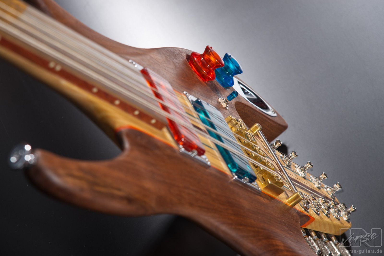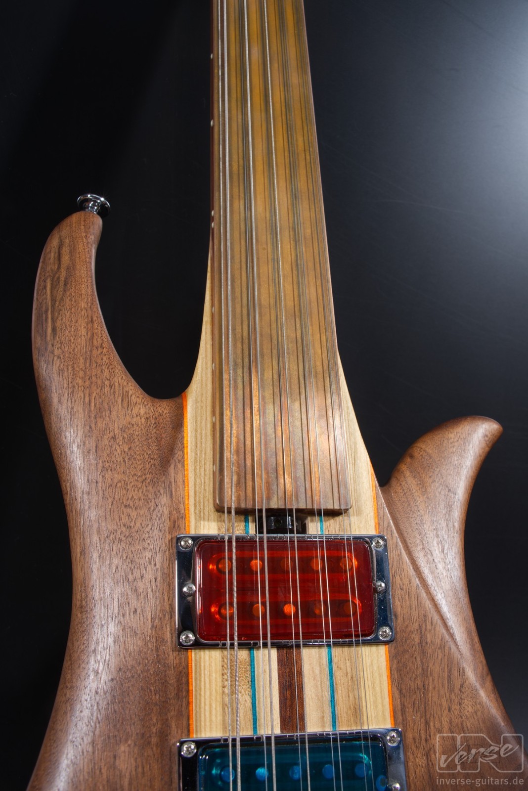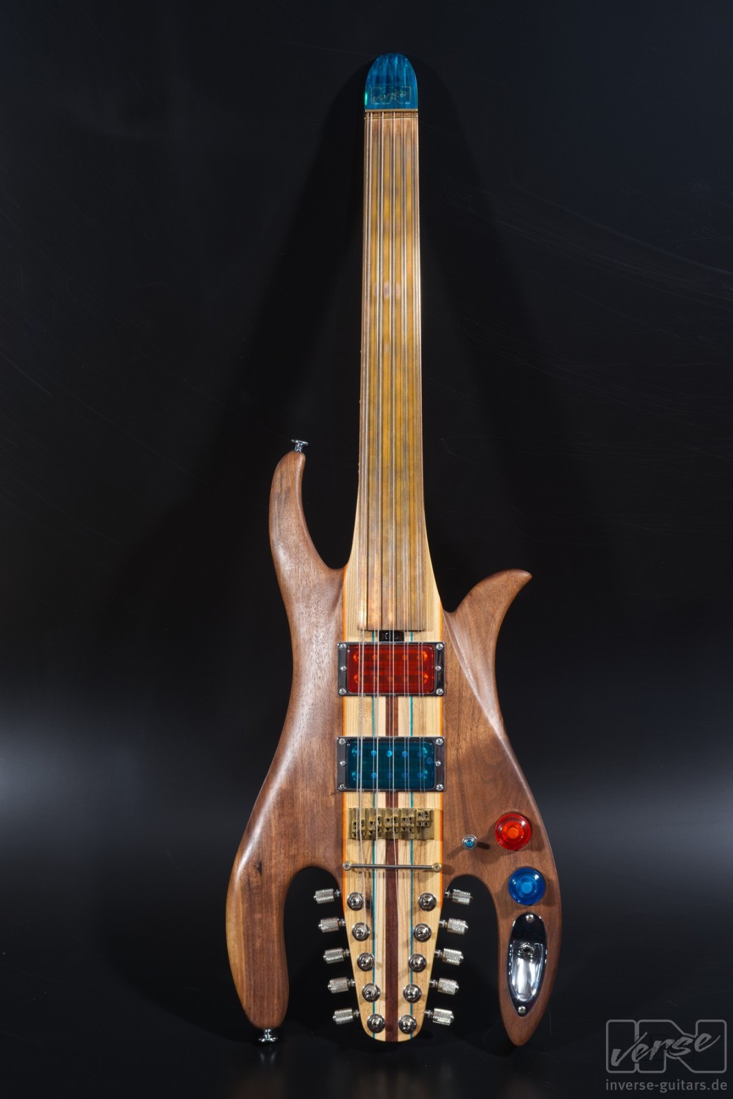 Inspiriert von einer arabischen oud kommt die Manta mit einem bundlosen Bronzegriffbrett und 10 Saiten. Die elegante Manta-gitarre, ein ultraleichtgewicht von 2,6 kg, ist ein sensibel und schnell ansprechendes Instrument für die Weiten der Klangmeere. Das Naturöl-Finish des Walnuss, Ahorn, Fichte und Mahagoni Holzes verleiht der durchgehenden Halskonstruktion ein geschmeidiges Gefühl, kombiniert mit einer schnellen Action. "Keep it simple"-Design mit boutique-gebauten woodoo Humbuckern, einer handgefertigten Inverse Messingbrücke und Speed-Buttons an den Düsenbergechaniken aus der Inverse Werkstatt.