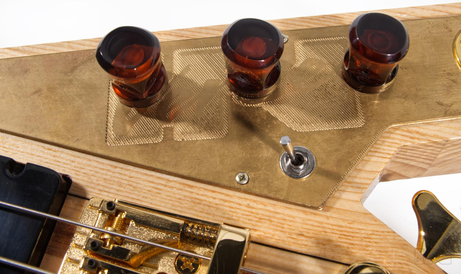 Aggressive looking 3.2 kg light, medium scale Piranha-bass. Responsive 24 frets on a Jatoba fingerboard, discreet high-gloss natural wood finish, carved brass electronicslid and two handmade, passive woodoo soapbars characterise this instrument.