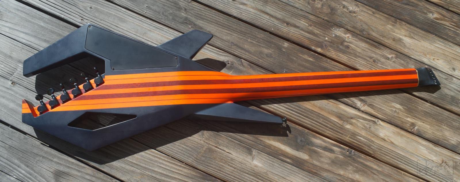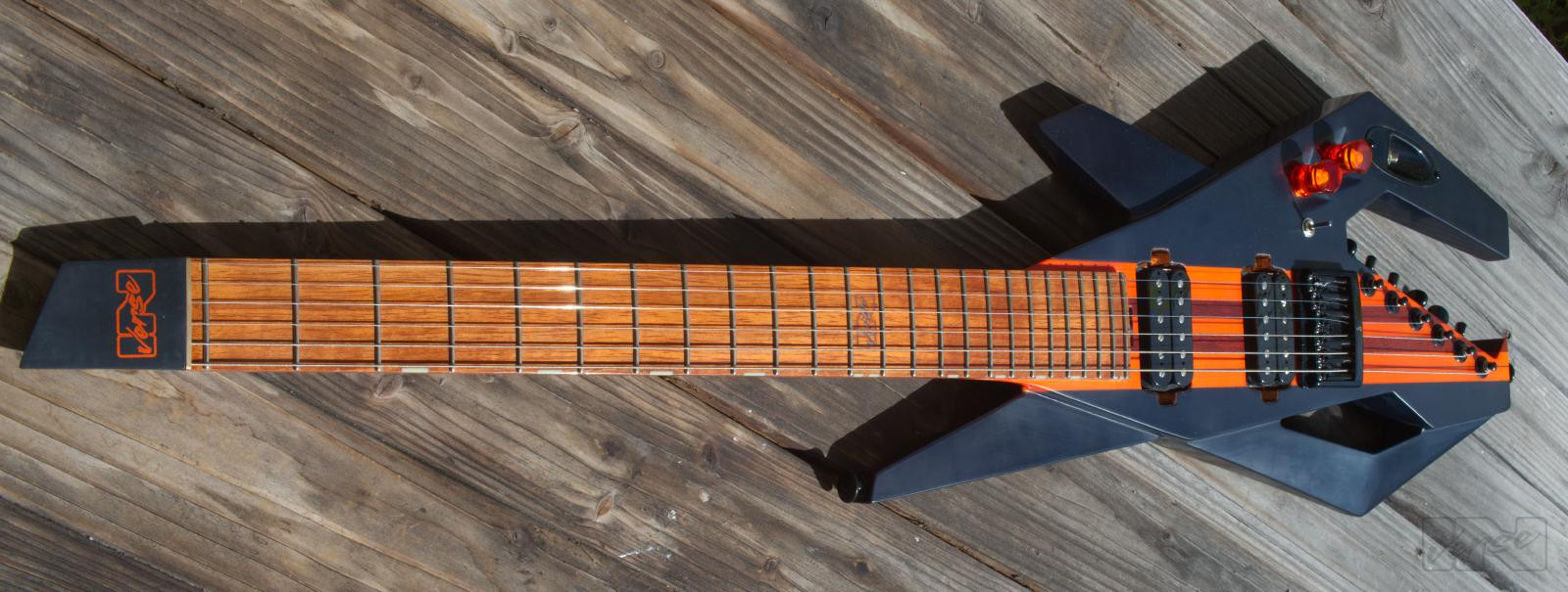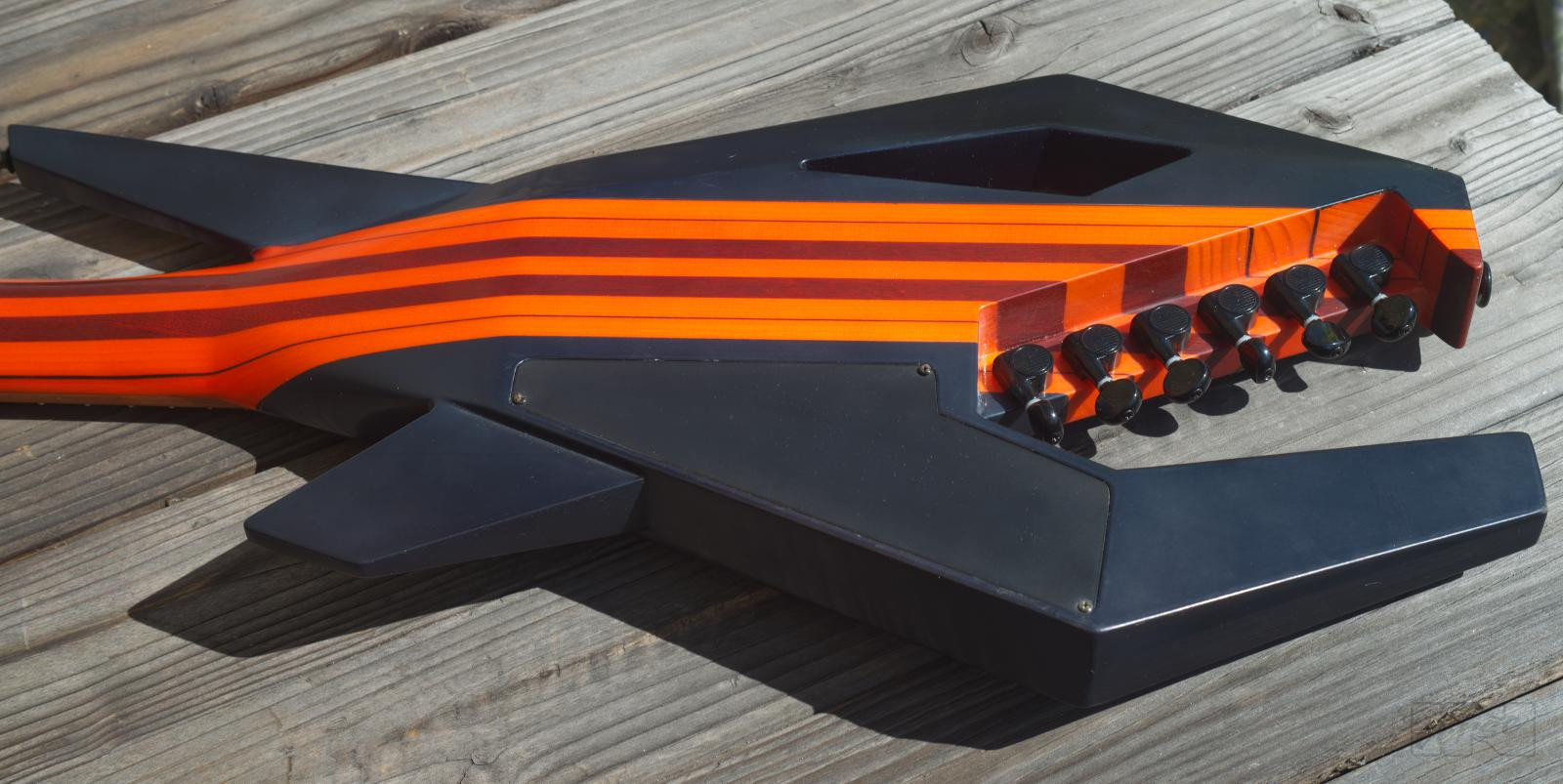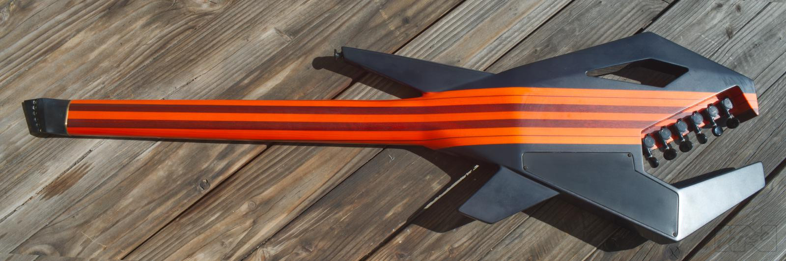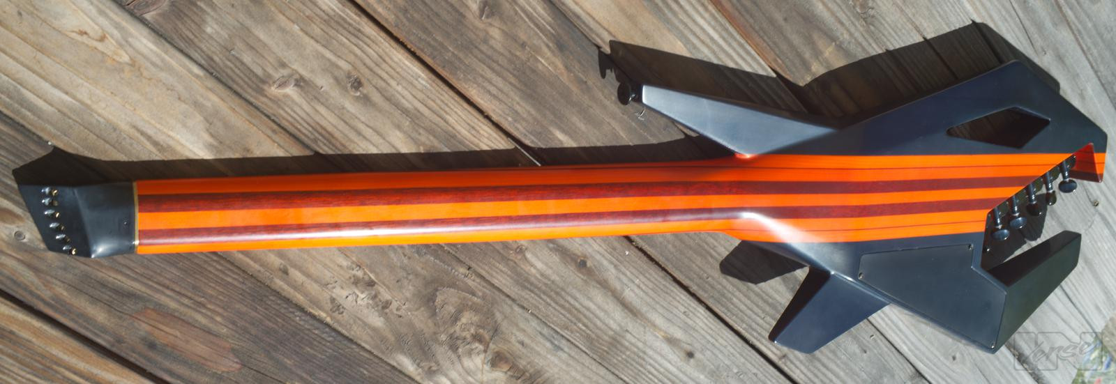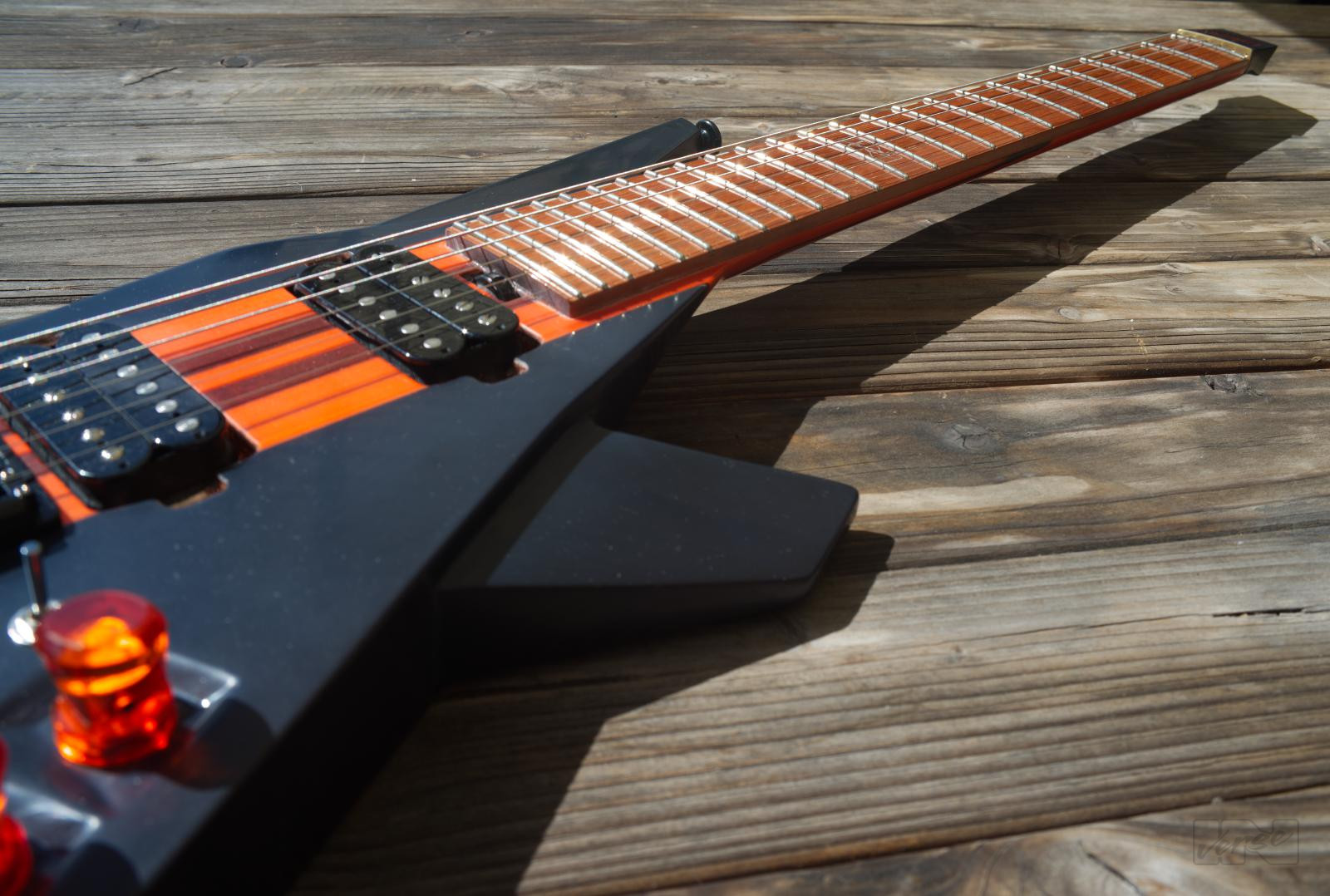 Aggressiv aussehende, 2,4 kg leichtgewichtige Piranha-gitarre ausgestattet mit 2 classic humbuckern, für vielfältige Sounds. 24 Bünde auf einem Jatoba-Griffbrett, mattierter, mehrfach laminierter, kohlefaserverstärkter Hals mit einzigartigem, abgerundetem Trapezprofil, dezentes transparentes orange/candyblack matt-finish geben der Piranha ihr einzigartiges Erscheinungsbild.